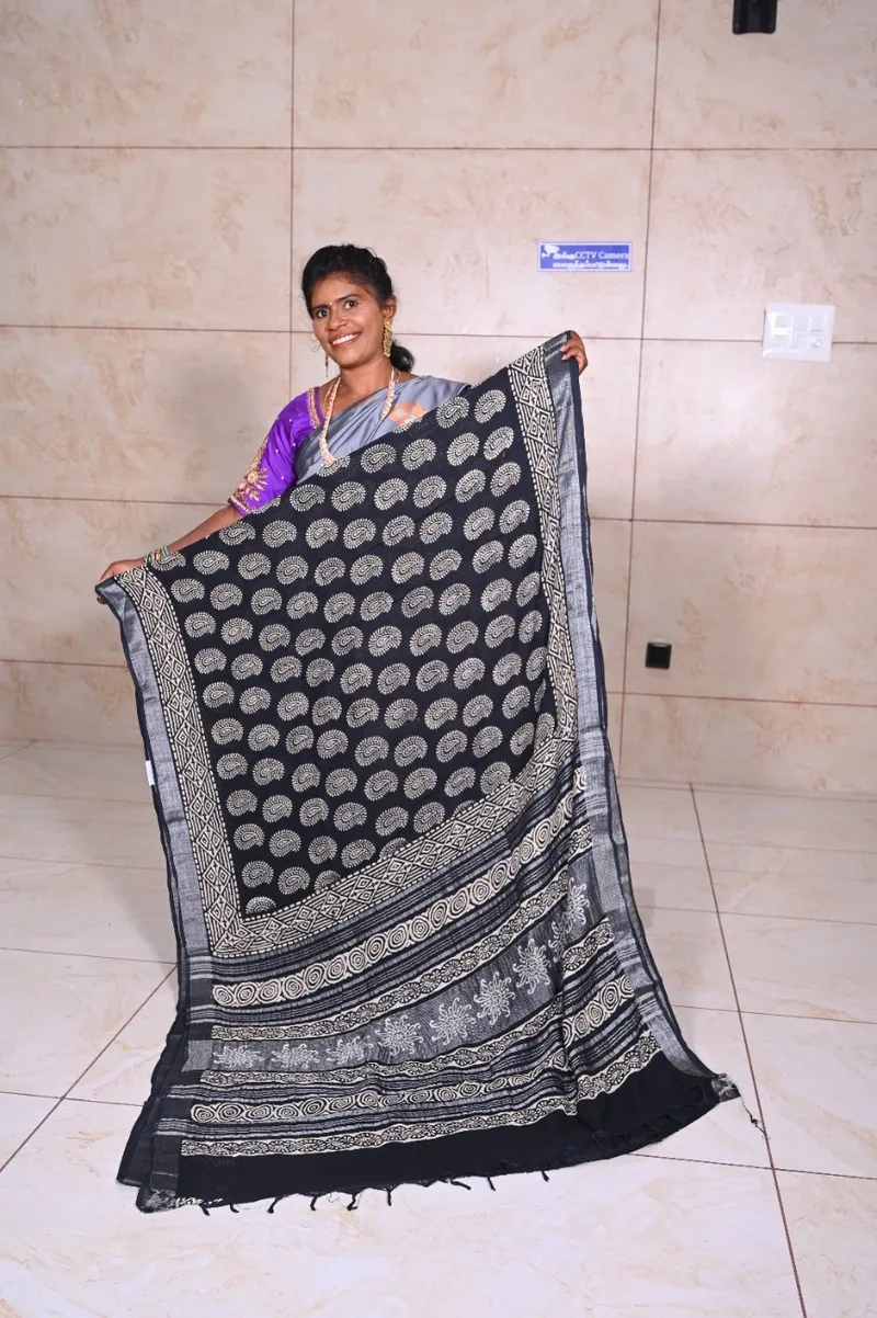Fabric - Premium linen Cotton Blouse - included(unstitched) Length - 6.3 Mtrs Work - Hand Paint Work with Zari viewing Elegant Comfort & Color Shade Occasion - Office Wear