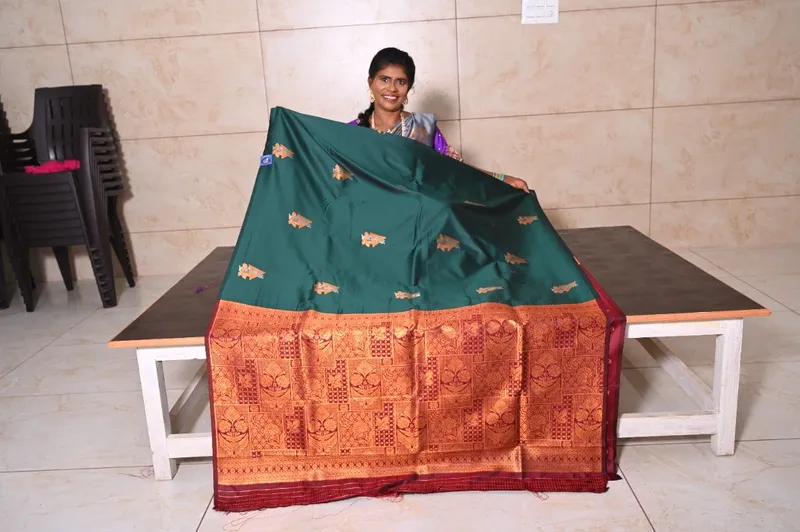 Fabric - Soft Silk Blouse - included(unstitched) Length - 6.3 Mtrs Work - Copper Zari Elegant Comfort & Color Shade Occasion - Function Wear