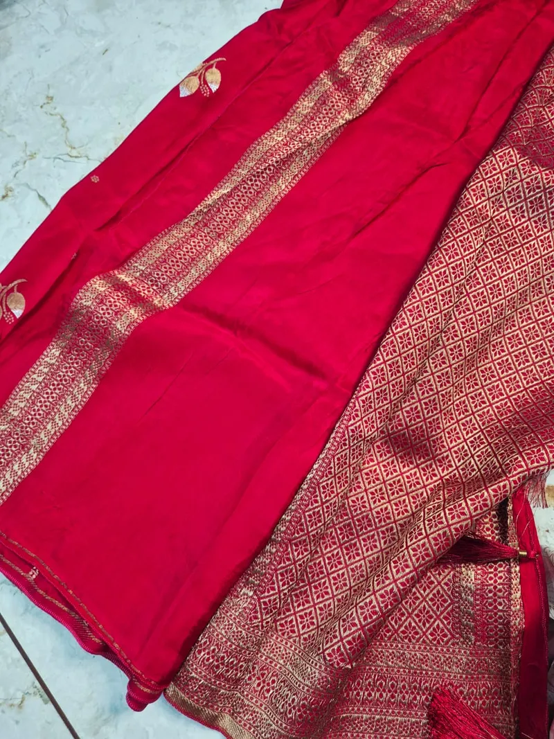 Fabric - Pure Banarasi Silk Blouse - included(unstitched) Length - 6.3 Mtrs Work - Hand Paint Work with Zari viewing Elegant Comfort & Color Shade Occasion - Party Wear