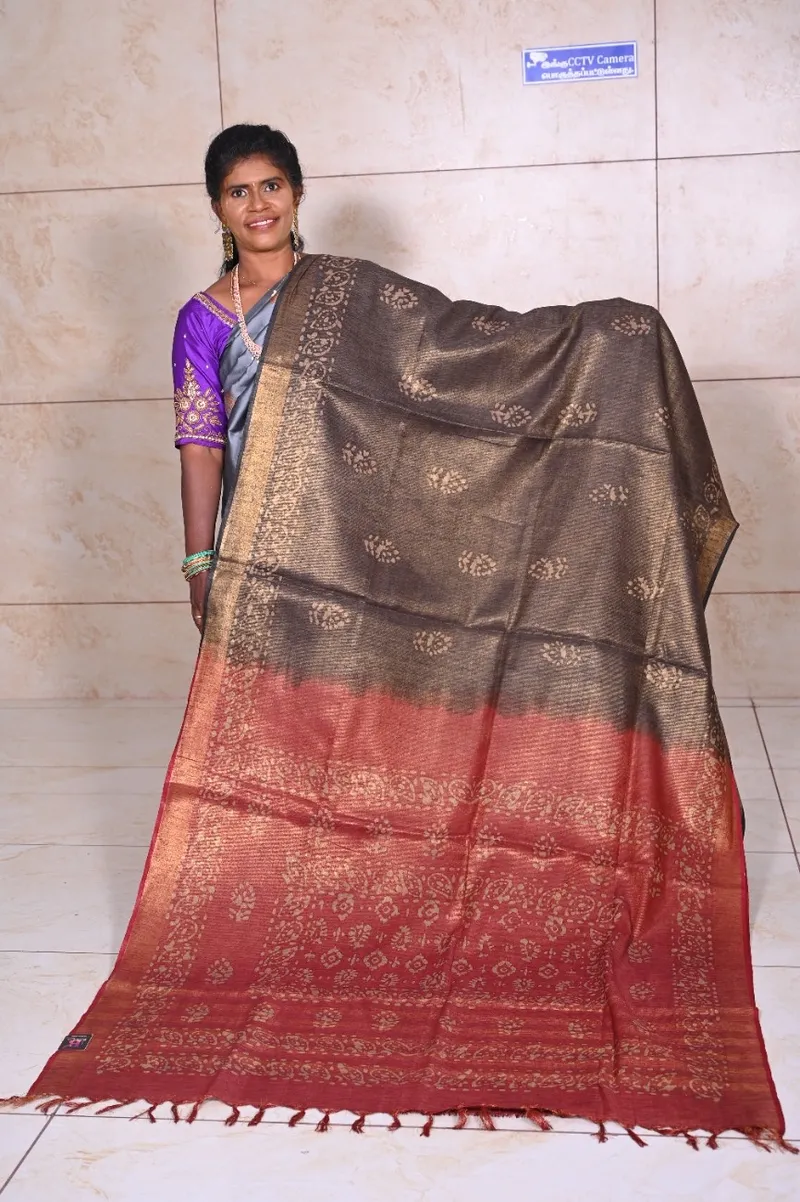 Fabric - Kaathi Tissue Silk Blouse - included(unstitched) Length - 6.3 Mtrs Work - Hand Paint Work with Zari viewing Elegant Comfort & Color Shade Occasion - Party Wear